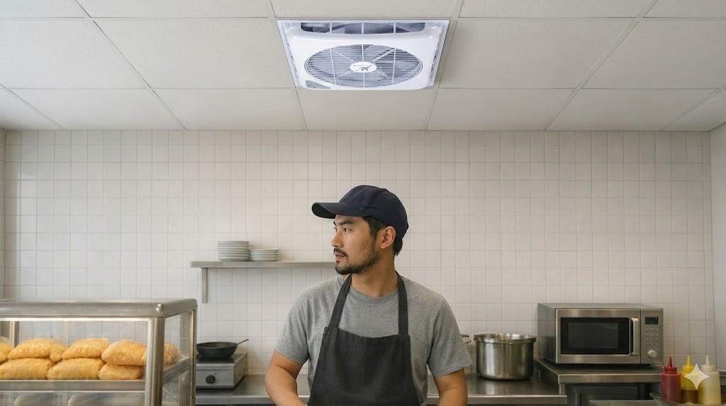 許多商用空間即使長時間開著冷氣,仍然會出現悶熱、空氣不流動、氣味堆積的情況,真正的問題往往不在溫度,而在「通風與空氣循環」是否有效。尤其是診所、早餐店、辦公室、補習班等天花板採用輕鋼架設計的場所,若缺乏良好的風場配置,冷空氣容易停留在局部區域,導致體感不適與能耗增加。