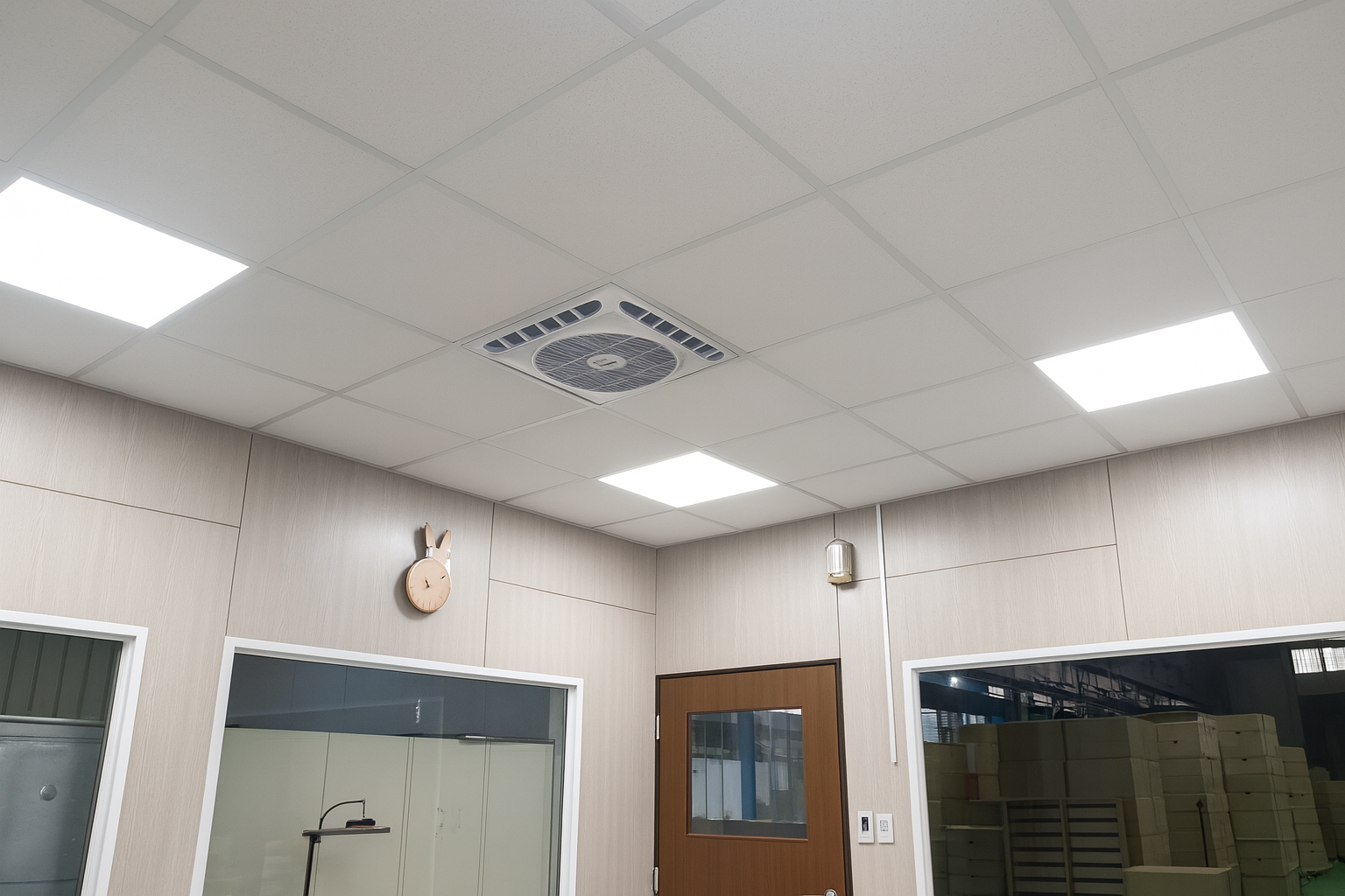- 相容多數輕鋼架天花板,安裝彈性高:設計上可直接整合既有輕鋼架結構,減少施工調整,特別適合已完工的商用空間導入。