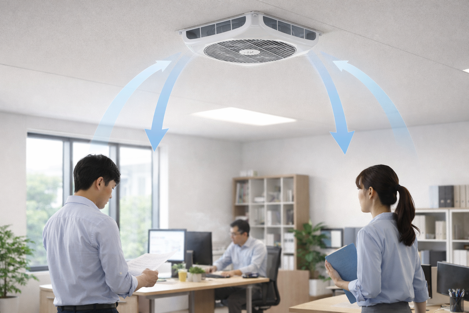 許多安裝錯誤來自「照格子裝」的直覺做法,但實際上仍需考量室內淨高與使用情境。當循環扇高度無法覆蓋人體活動區域時,即使設備運轉正常,也難以帶來明顯體感改善,這也是商用空間常見的無效安裝原因之一。