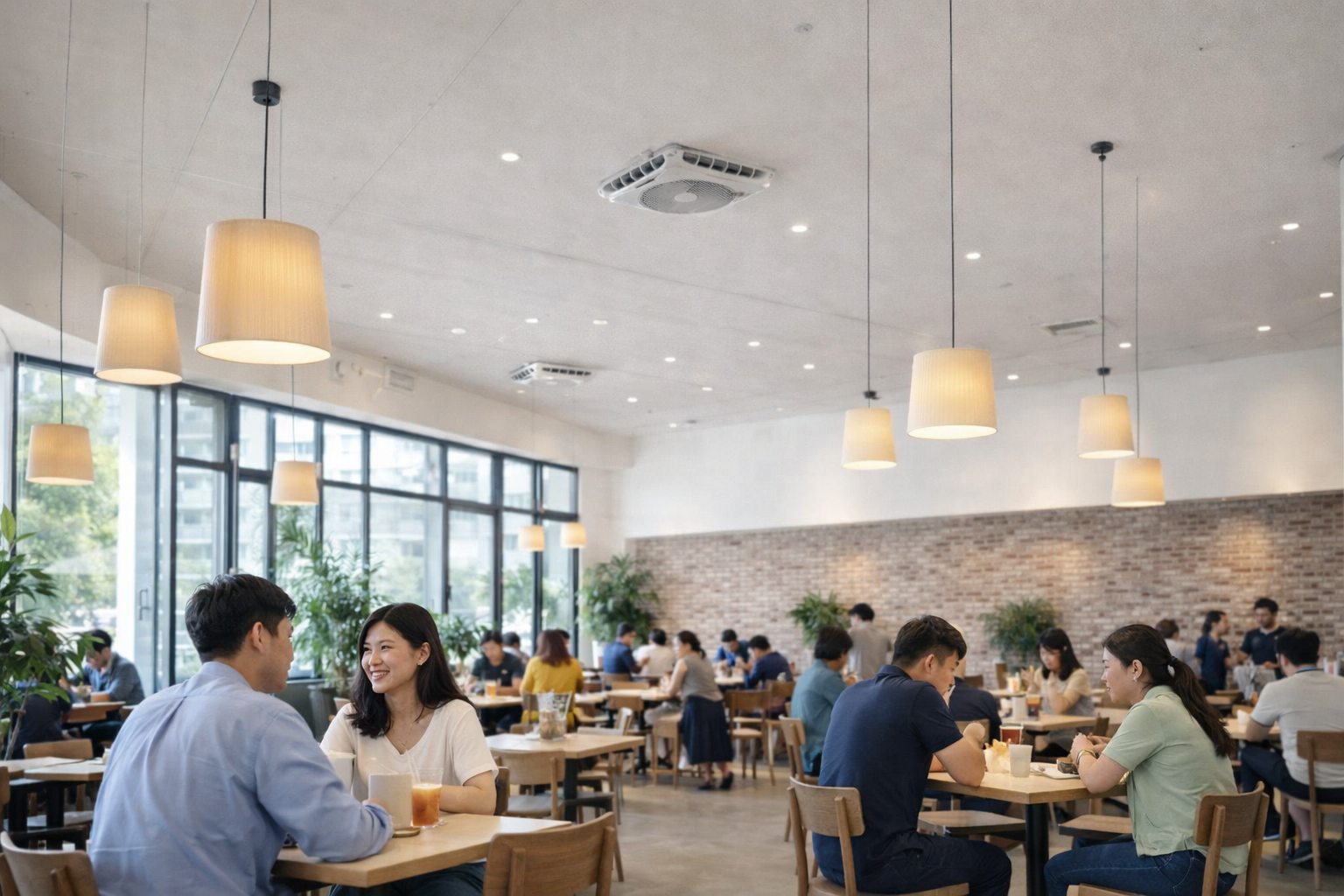 餐廳、辦公室、健身房等空間,因人員密集、設備運轉,熱源持續產生,若僅依賴冷氣容易造成局部過冷、整體不均。循環扇能讓空氣均勻流動,使降溫效果分布在整個空間,而非集中在少數位置。