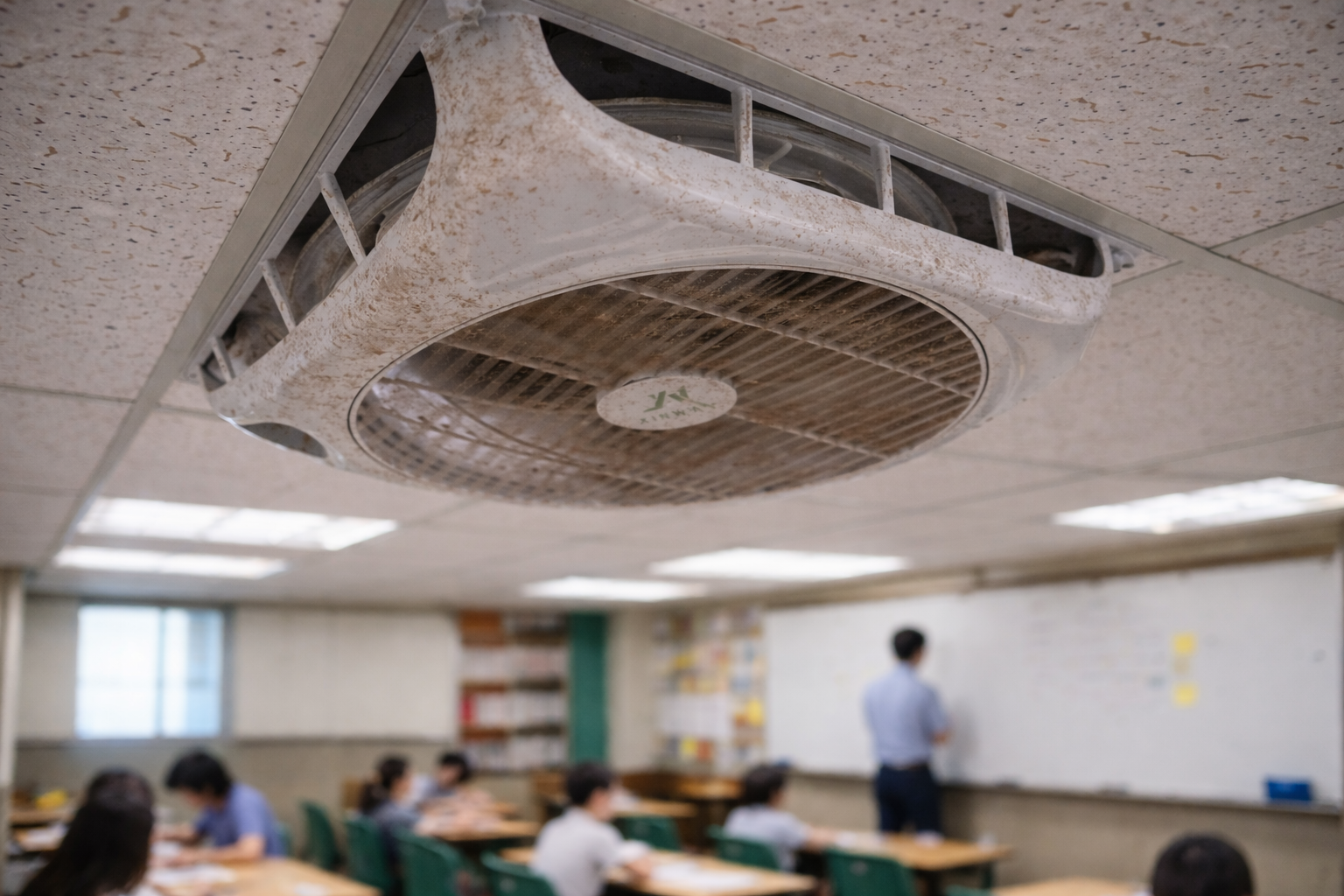 輕鋼架天花板環境本身就容易累積粉塵,加上循環扇長時間吸入空氣,風葉與防護罩周圍常會附著大量灰塵。當灰塵或細小異物堆積過多時,會明顯增加馬達運轉負載,不僅讓轉速變慢,也容易產生異音,甚至導致循環扇短暫停轉。